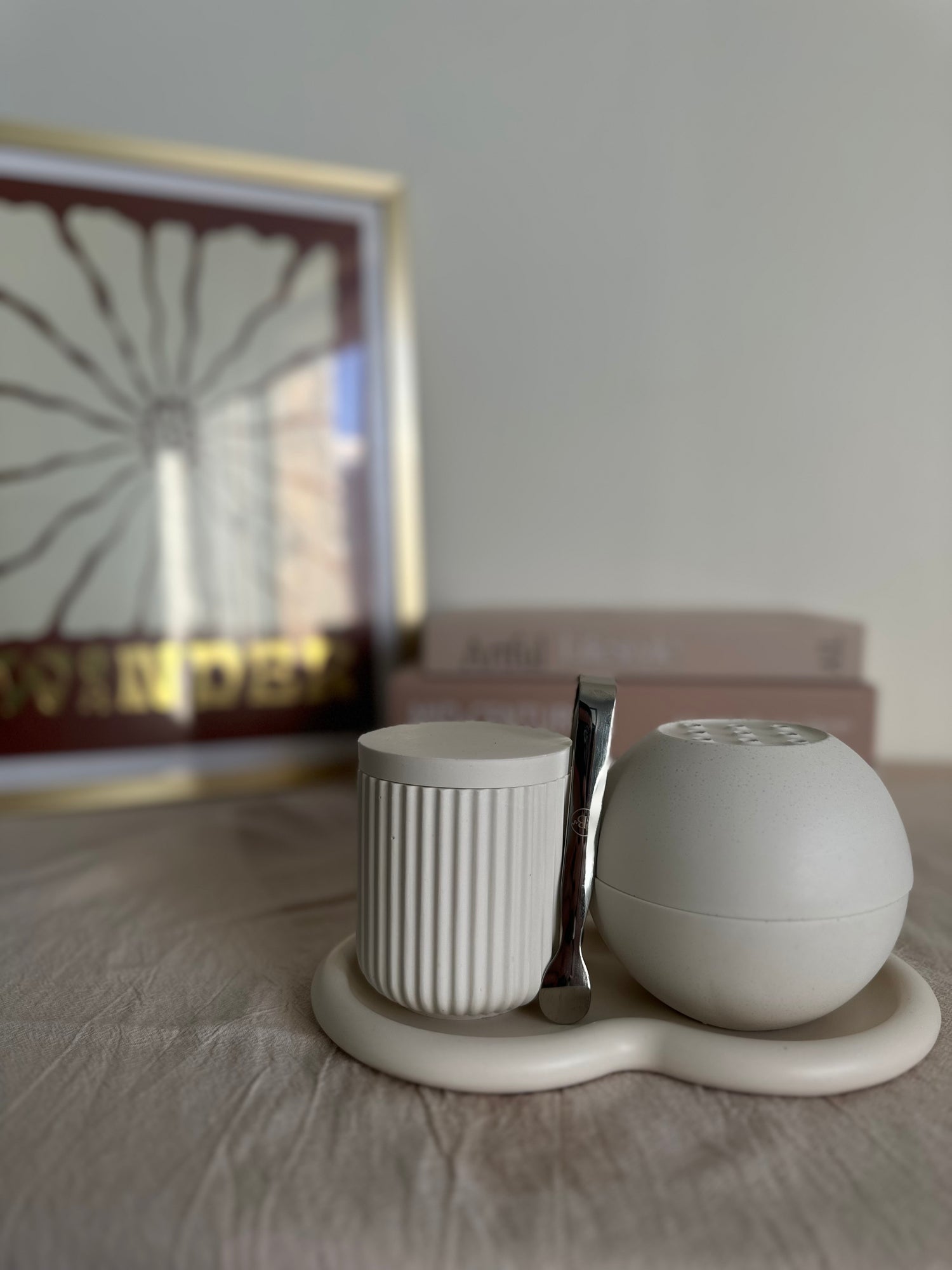 Chaque création est moulée, poncée et finie à la main en jesmonite, un matériau moderne reconnu pour sa durabilité et son esthétique minérale. Ce travail artisanal minutieux donne naissance à des pièces uniques, marquées par de légères variations de teinte ou de texture, véritables témoins du fait main. Ces singularités ne sont pas des défauts, mais la preuve d’un savoir-faire authentique.